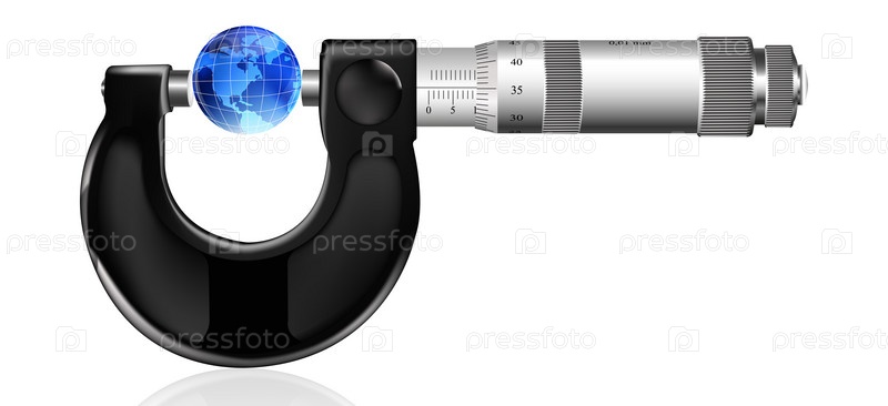Микрометр измеряет голубой глобус Земли