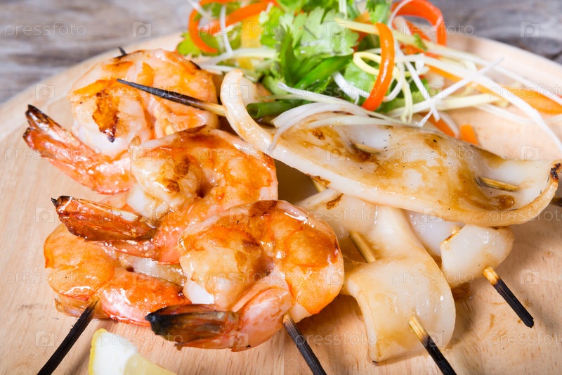 Шашлык из морепродуктов на гриле