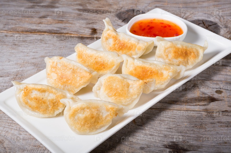 Жареные пельмени с соусом Чили