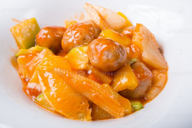 Китайские фрикадельки с фруктами