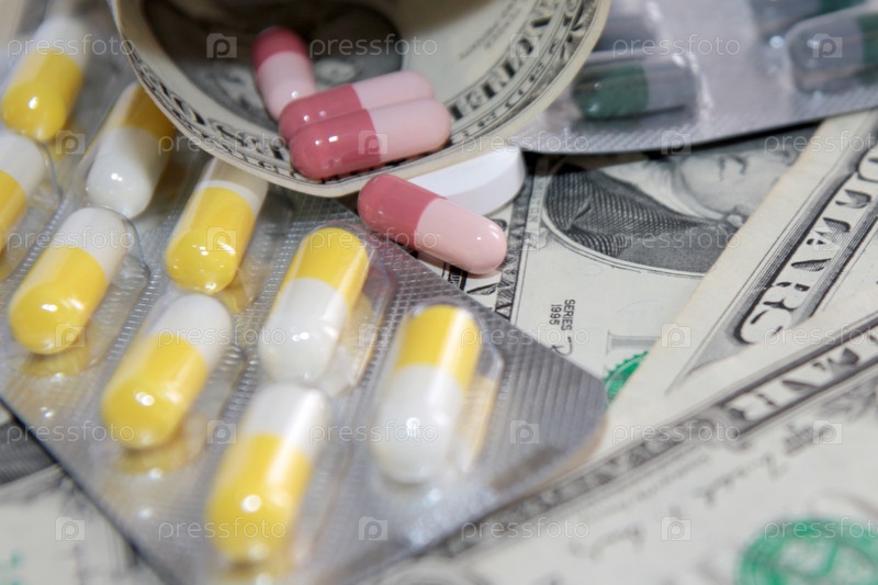 Таблетки и доллары крупным планом
