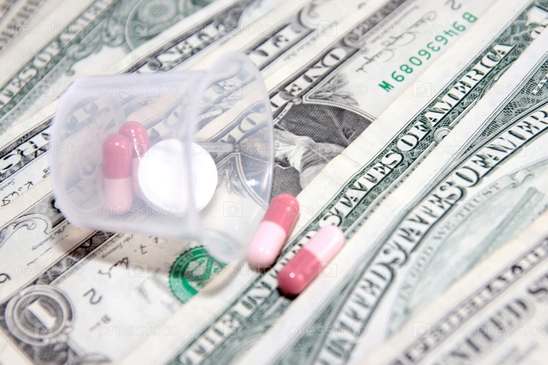Таблетки и доллары крупным планом