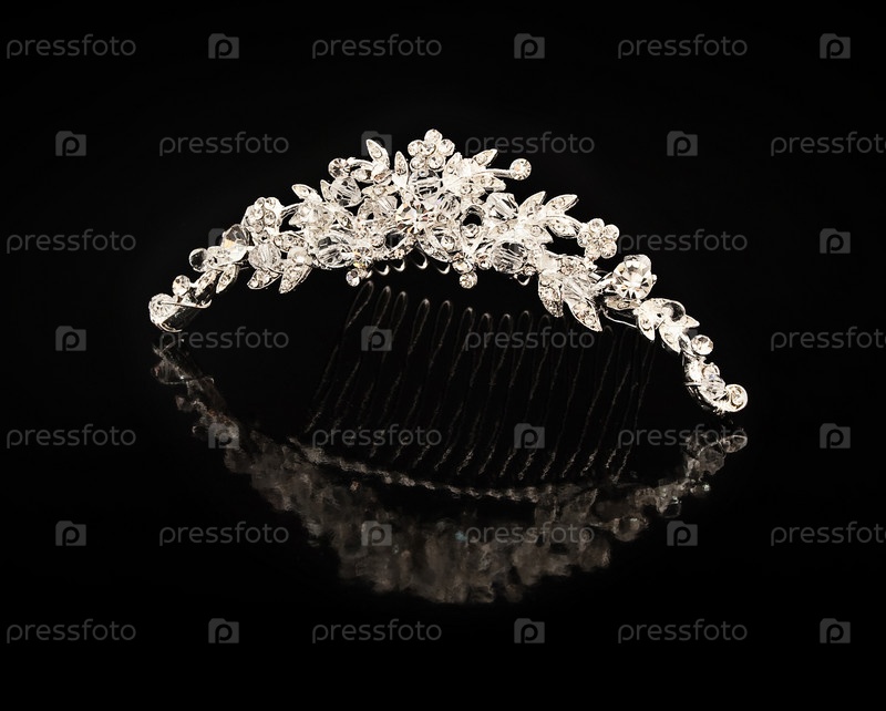 Бриллиантовый гребень для волос на черном фоне с отражением