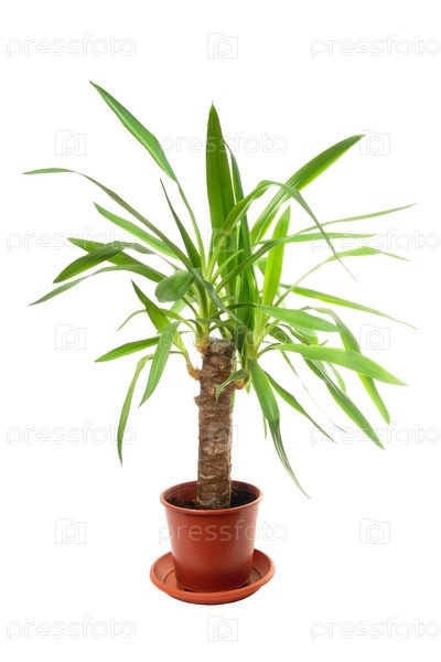 Пальма в цветочном горшке на белом фоне