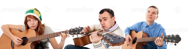 Музыканты играют на акустической гитаре