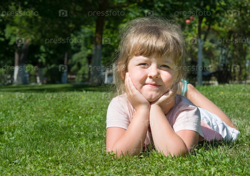 лежать на зеленой траве