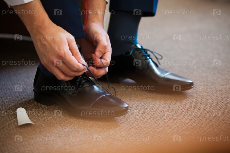 Мужчина завязывает шнурки