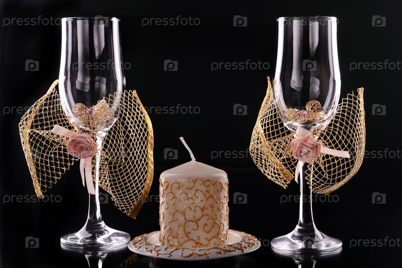 objectsсвеча и свадебные бокалы