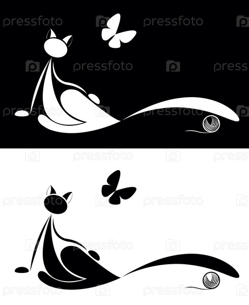 Нарисованные кошки и бабочки