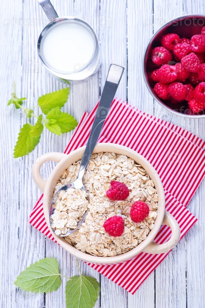 Овсяные хлопья и малина