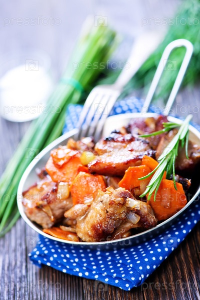 Жаренное мясо с овощами