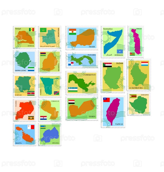 Серия марок с разными странами