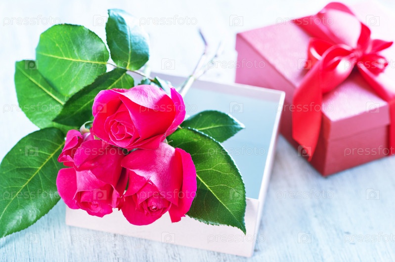 Розы и подарочная коробка