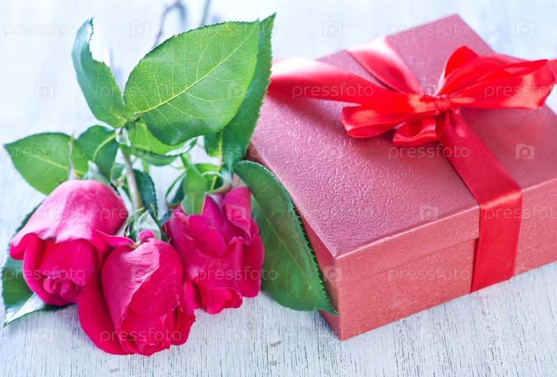Розы и подарочная коробка