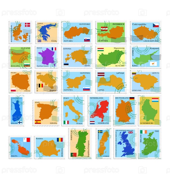 Серия марок с силуэтами различных стран