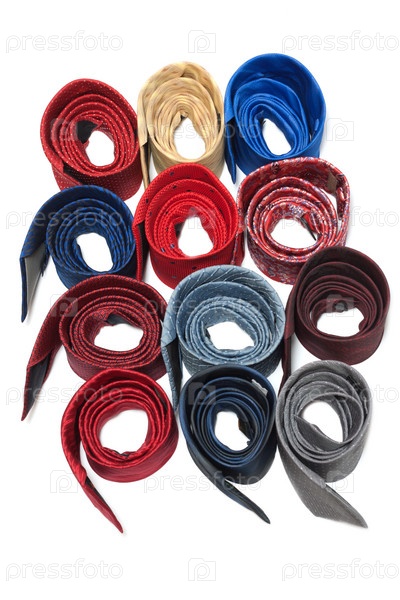 Разноцветные мужские галстуки с извилистым кольцом на белом фоне