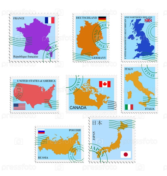 Серия марок с силуэтами различных стран
