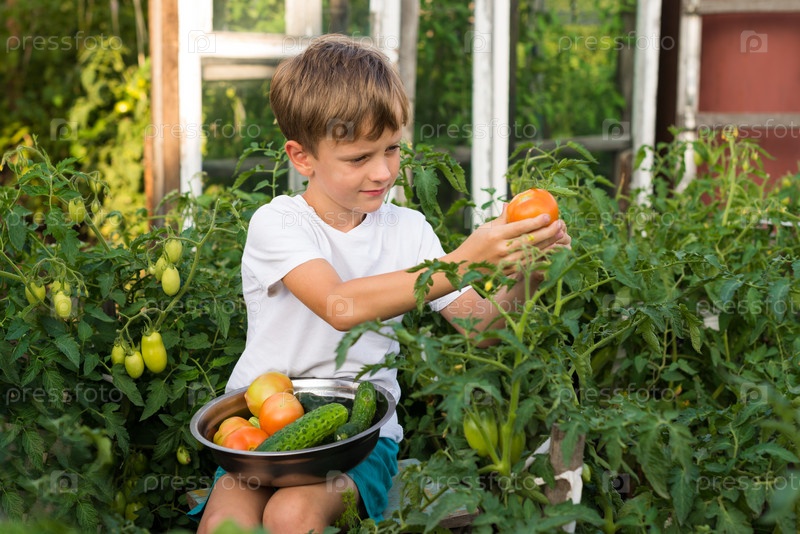 Мальчик собирает урожай