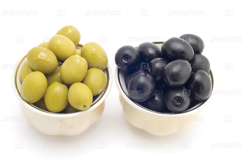 Объект серии на белый - еда - оливки в чашке