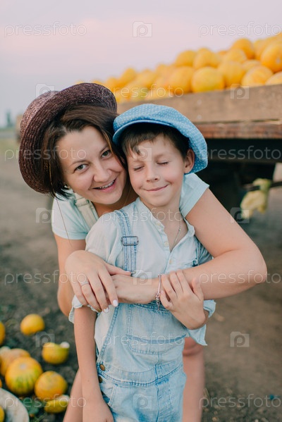 Мать и сын с дынями