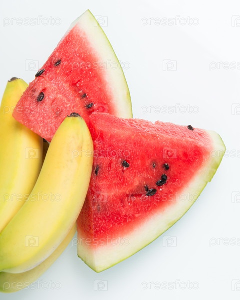 Спелые желтые бананы и сочный арбуз