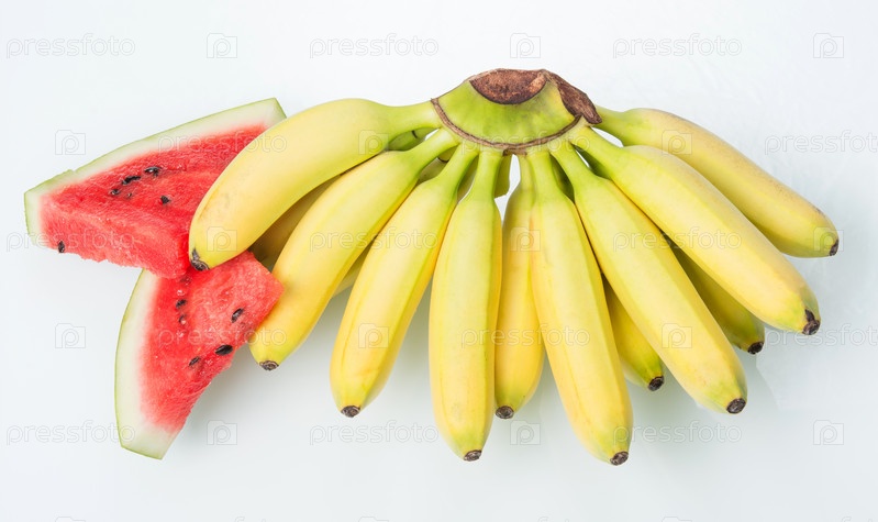 Спелые желтые бананы и сочный арбуз