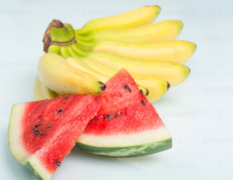 Желтые бананы и сочный арбуз