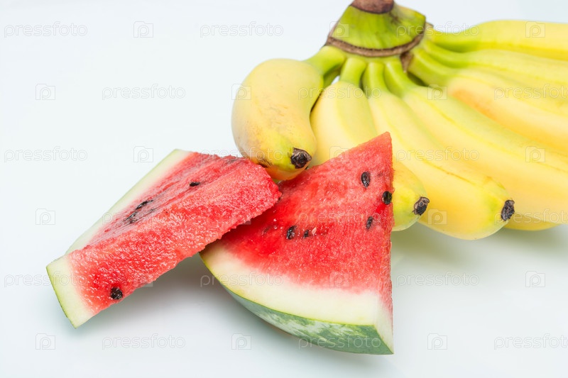 Желтые бананы и сочный арбуз