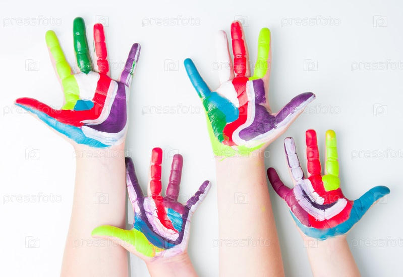 Руки детей в разноцветных красках