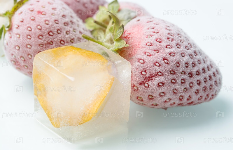 Кусочки фруктов во льду