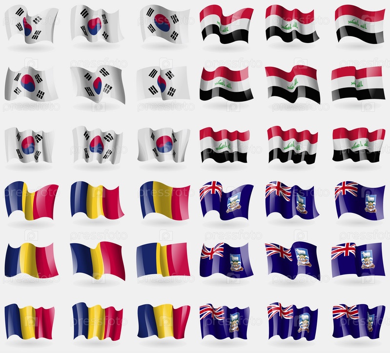 Корея Южная, Ирак, Чад, Фолклендских островов. Набор флагов стран мира