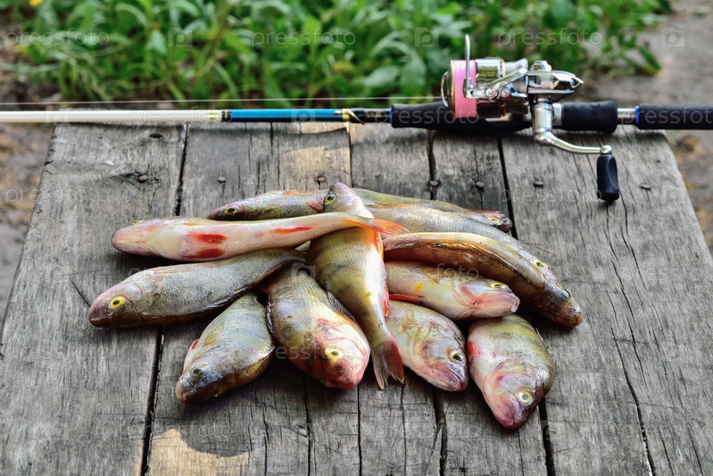 Окуни на деревянном столе