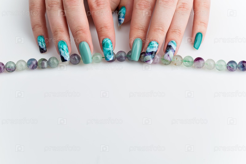 Руки женщины с красочными ногтями