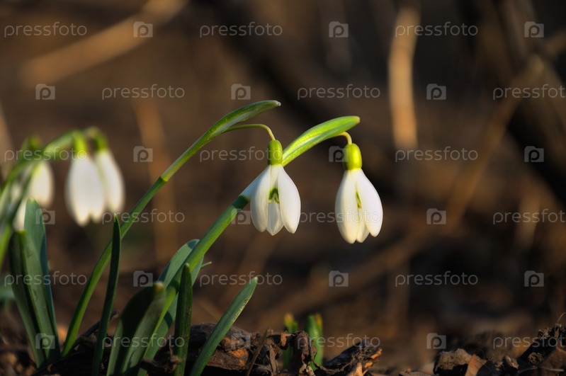 Свежие подснежники крупным планом