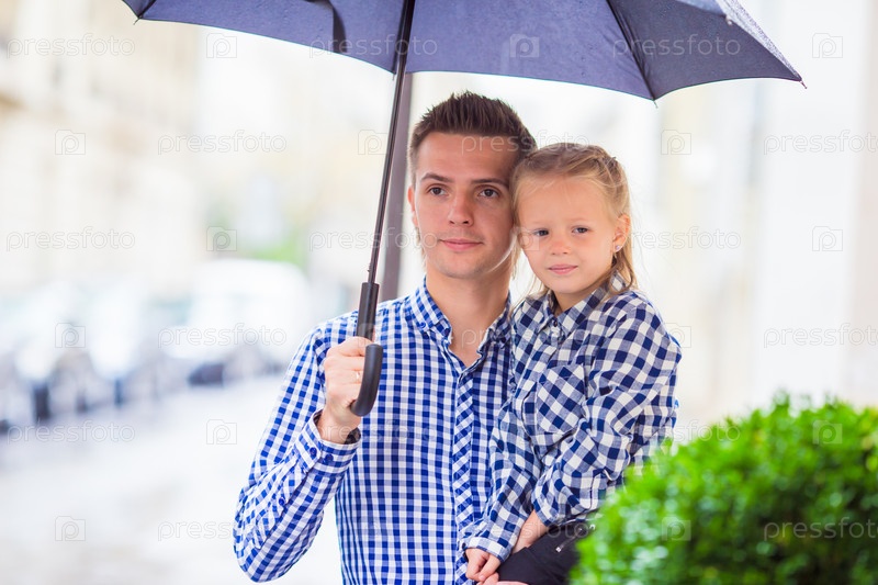 Семья на улице под дождем