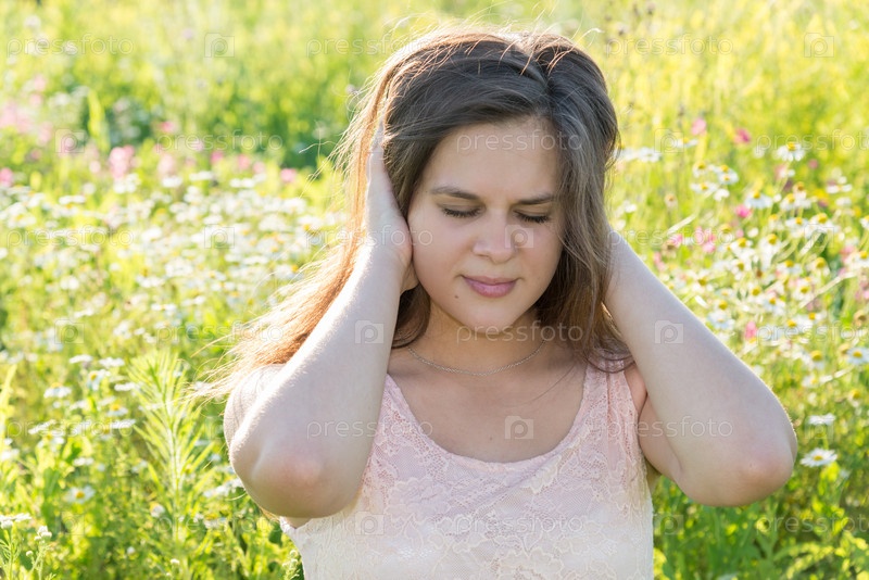 Девушка подросток закрывает уши
