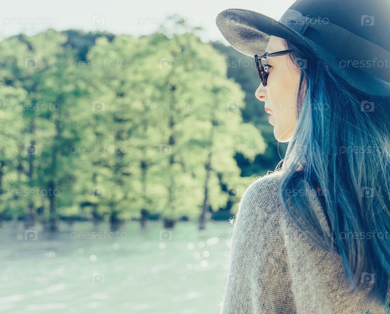 Женщина, отдыхая на природе