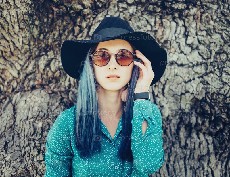 Красивая девушка с синими волосами
