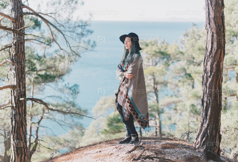 Красивая женщина в пончо