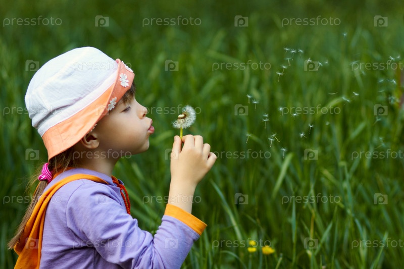 Маленькая девочка с одуванчиком в поле