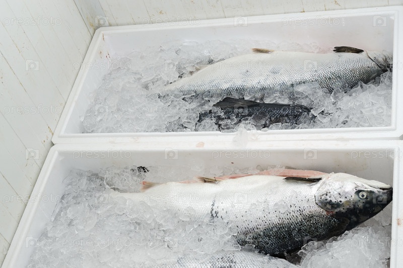 Хранение семги в ящиках со льдом