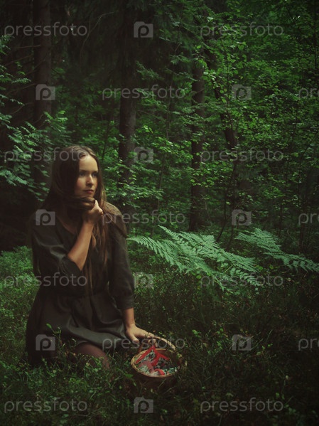 Девочка с длинными волосами в лесу
