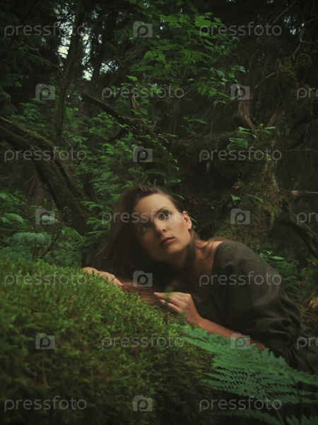 Девочка с длинными волосами в лесу