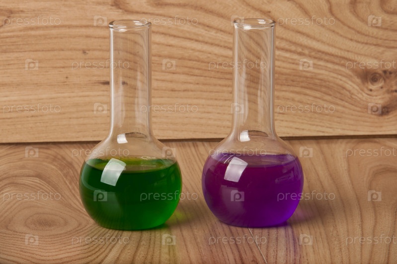 Стеклянные колбы на столе