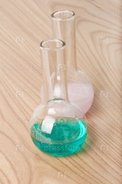 Стеклянные колбы на столе