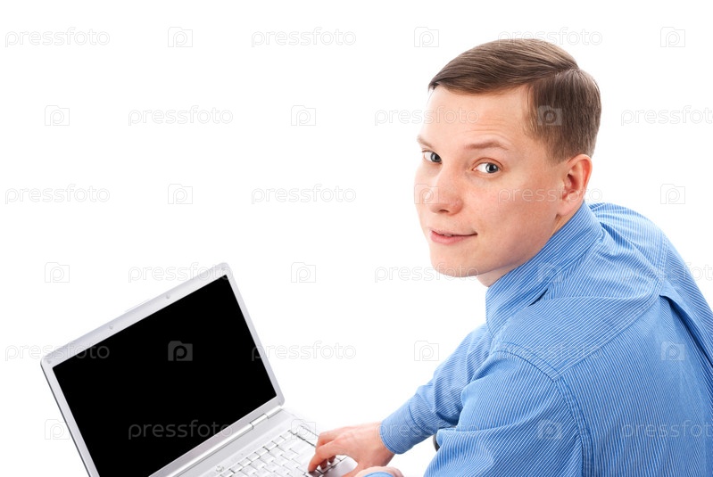 Мужчина сидит за ноутбуком