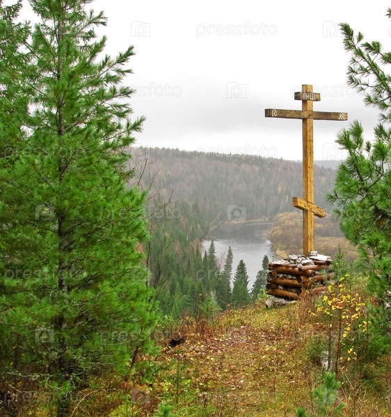 Крест на скале над рекой
