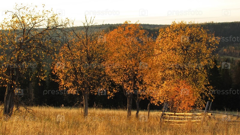Деревья на закате осенью