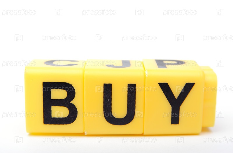 Слово 'купить' из желтых кубиков