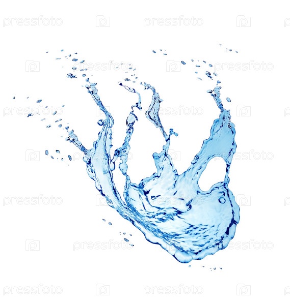 Голубая вода, всплеск, изолировано на белом фоне